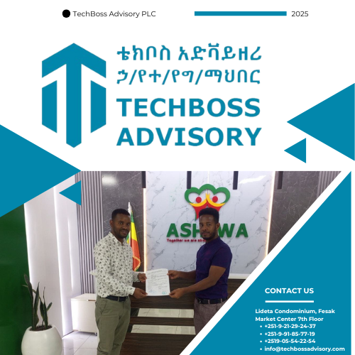 TechBoss Advisory PLC is a technology-driven consulting firm founded in 2024 G.C in Ethiopia to provide innovative business, investment, property development, and urban planning solutions. Our goal is to transform complex challenges into strategic opportunities by leveraging technology, data, and expert analysis. We are a team of highly skilled professionals with over 9 years of experience in multiple sectors, including business development, urban planning, real estate, and financial consulting.